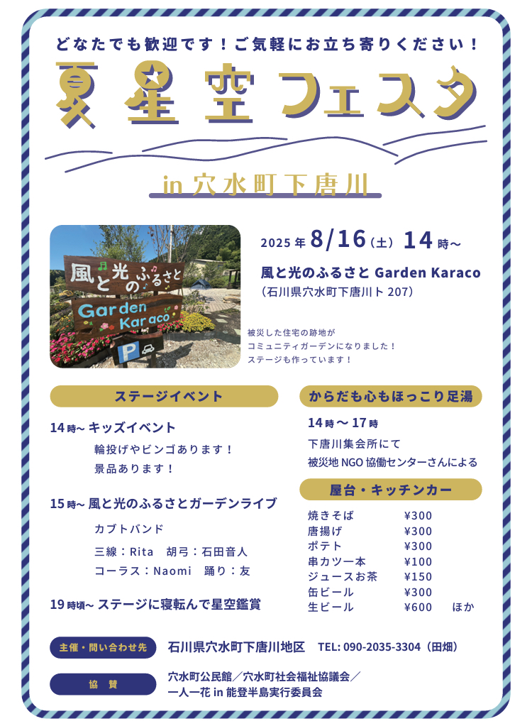 風と光のふるさと Gaeden Karaco(石川県穴水町下唐川207)で開催します!